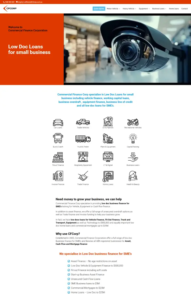 The CFCorp website was part of a complete package. logo design, branding, business cards, social media setup & web